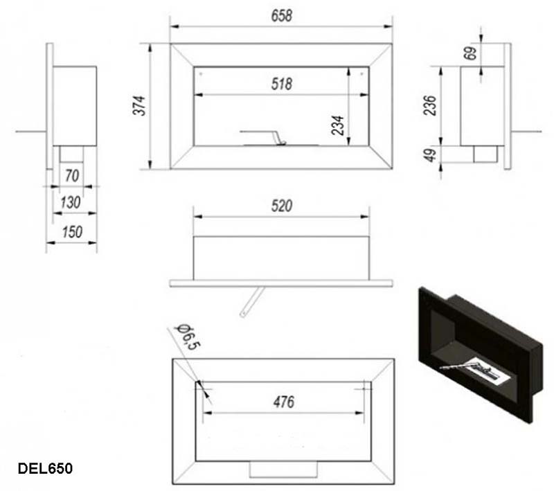 sisäänrakennettu. Vaatii palamattoman taustan, kuten biotakat yleensä.