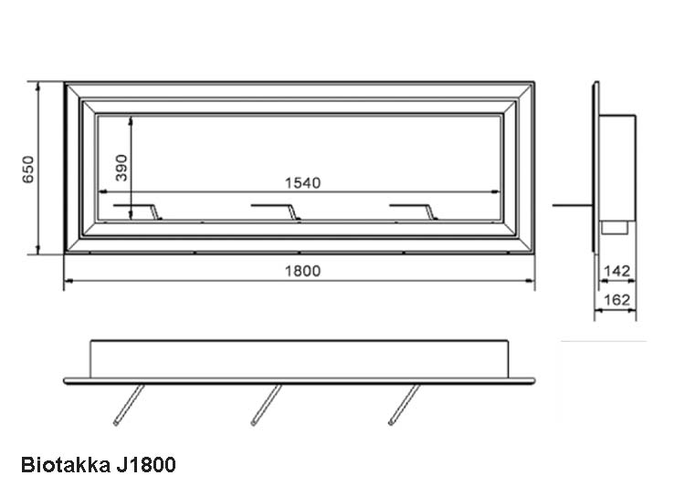 1500x800x400 mm. Biopolttimen polttoainesäiliö 4,5 litraa. Paloaika