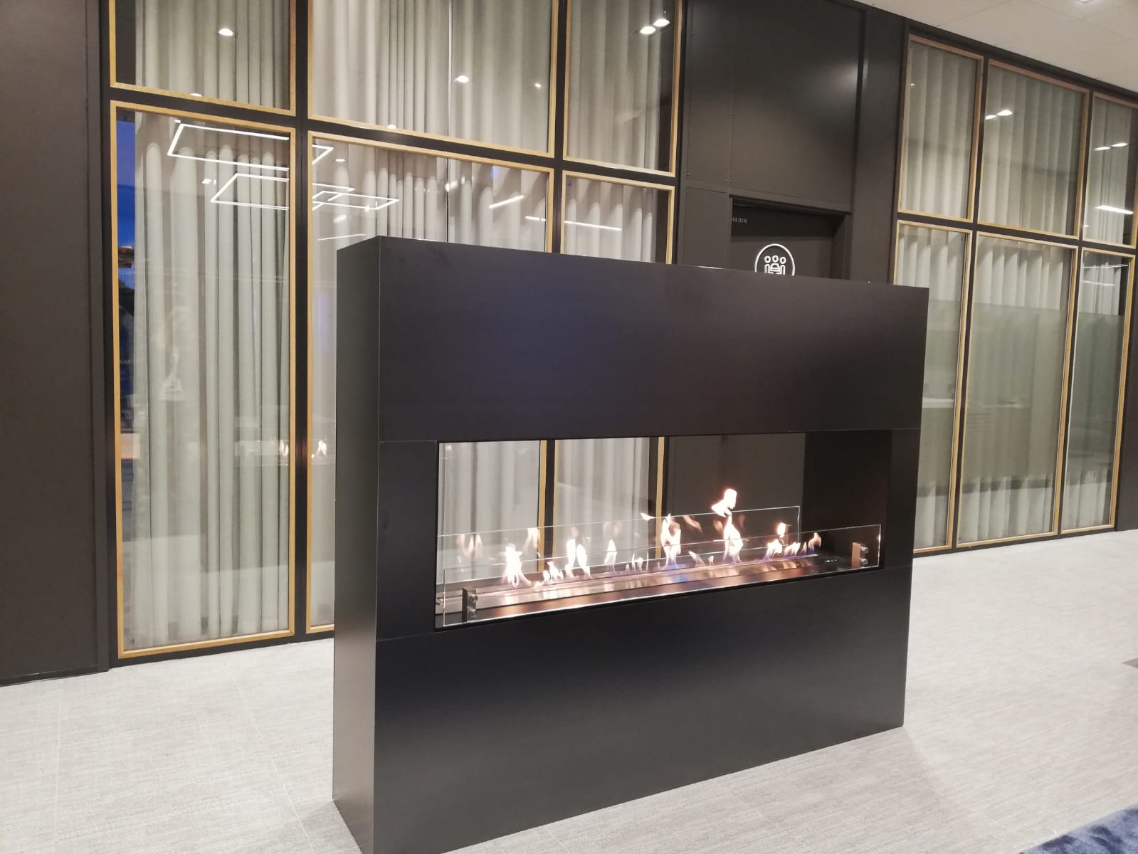 tai sisäänrakennettu. Vaatii palamattoman taustan, kuten biotakat